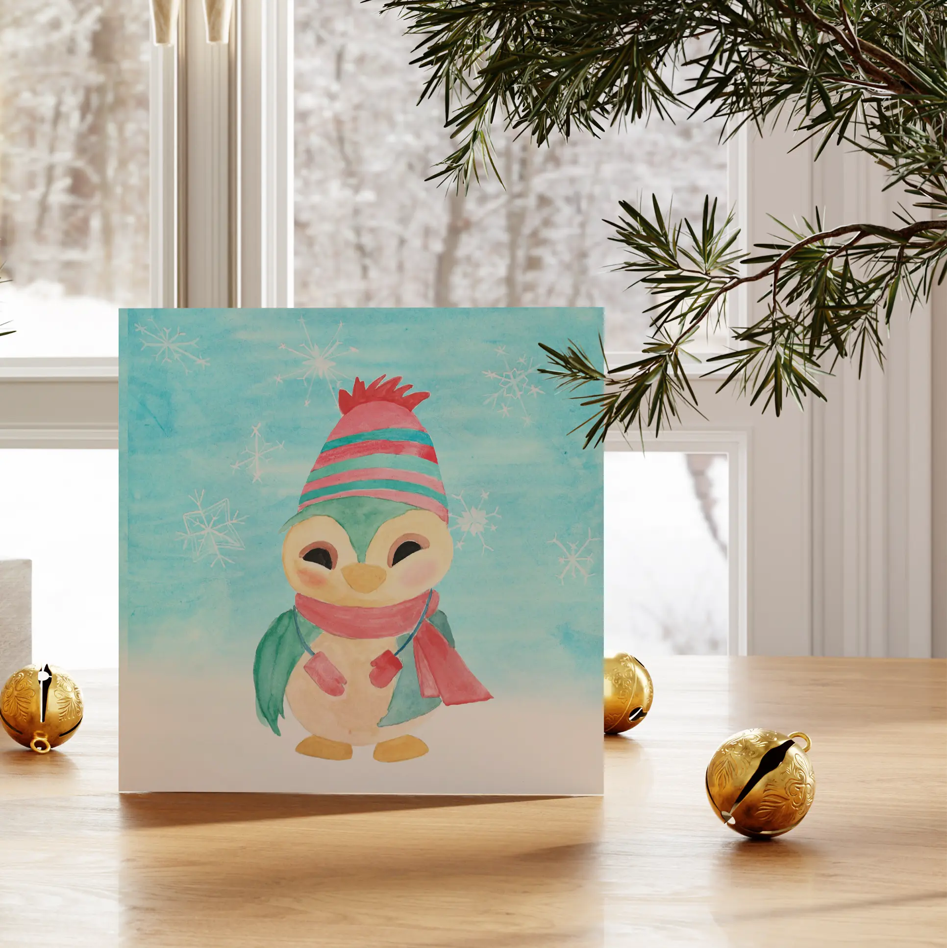 Het is een speelse kaart die fijn is voor familie, vrienden of iemand die je iets warms wilt wensen in de donkere dagen van december. Licht, zacht en vrolijk zonder druk te worden.