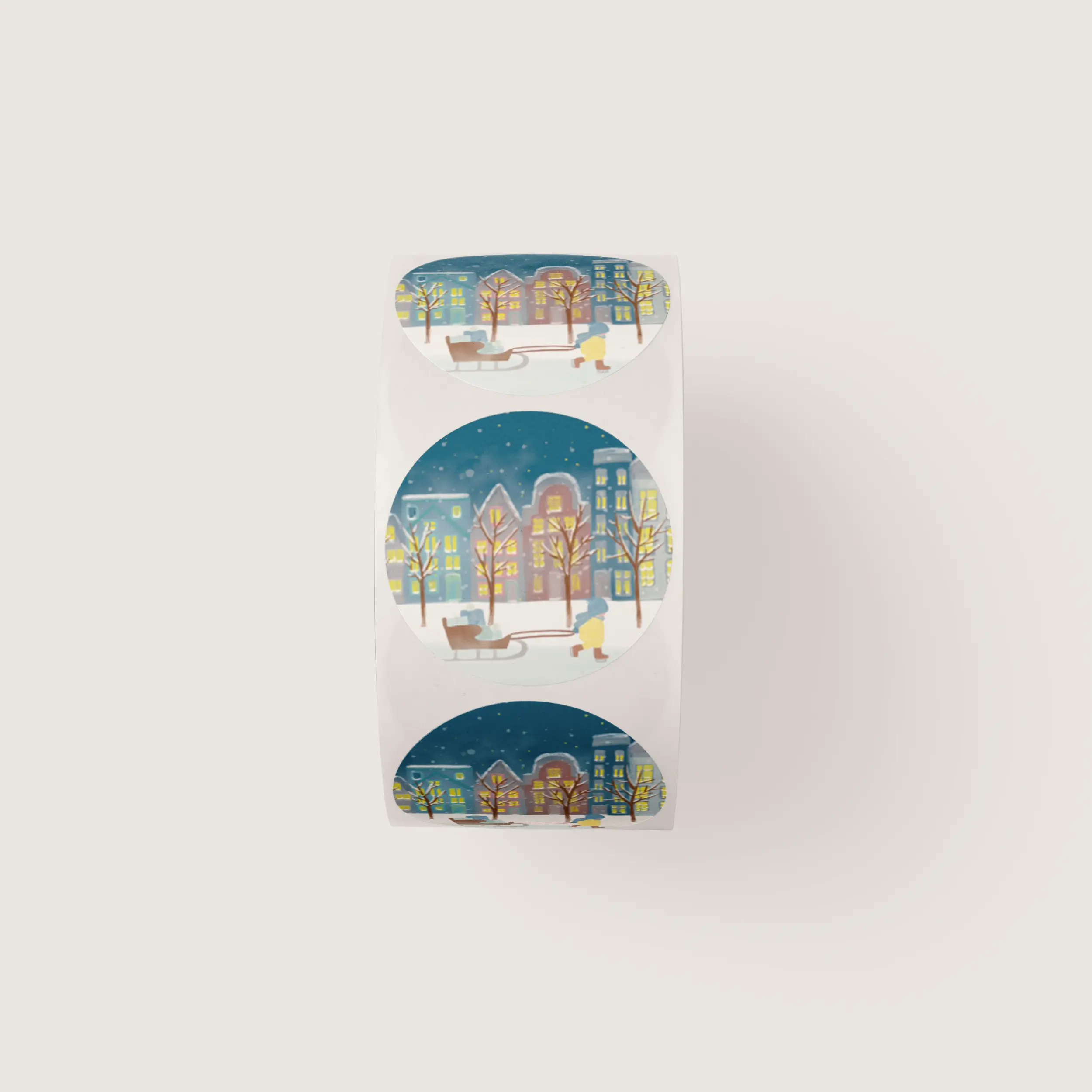 Deze sticker toont een knus wintertafereel: een jongetje schaatst op de grachten met een slee vol cadeaus achter zich aan. Op de achtergrond prijken verlichte grachtenpanden en een met sneeuw bedekte straat. Het ontwerp straalt een gezellige winterse sfeer uit. Ze zijn hartstikke leuk om jouw cadeaus en bestellingen tijdens de feestdagen gemakkelijk iets sfeervols mee te geven.